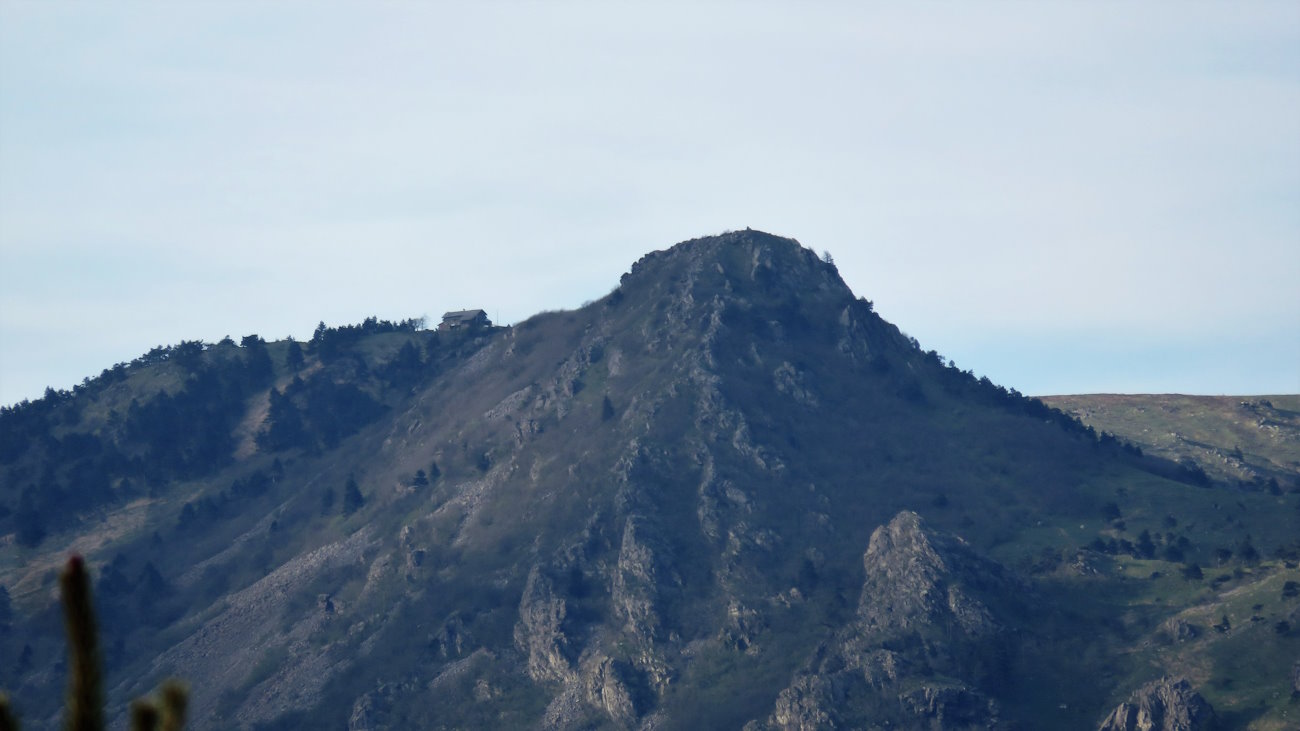 Il Santuario di Ns. Signora della Guardia visto dal Bric NoiaZompettando tra gli arbusti, fino al promontorio del Monte Grosso