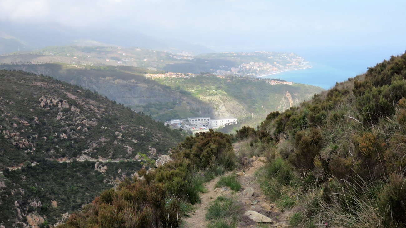Da questa posizione il panorama è stupendo. Verso ponente si vedono Varazze, Spotorno, Savona, l’isola di Bergeggi e Capo Noli mentre a levante Arenzano, Genova e, in lontananza, le Cinque Terre. Purtroppo è presente sempre quella leggera foschia, altrimenti riuscirei tranquillamente a scorgere la costa della nostra penisola almeno fino alla Toscana..