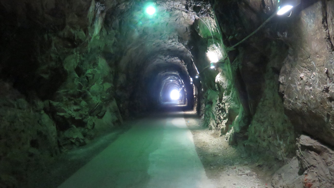 Dai monti al mare, che cambiamento in una singola escursione! Quello in cui mi trovo non è un lungomare come tanti, ma un vero cammino (ovviamente pianeggiante e asfaltato) con numerose gallerie scavate nella roccia in una delle porzioni più selvagge di questo tratto di costa. Qui fino alla fine del 1800 correva la ferrovia. Percorrendola ammiro paesaggi con scorci davvero meravigliosi che non staccano del tutto dal paesaggio montano, mare a parte. È proprio la montagna a scendere fin quaggiù, modellando ogni tanto qualche anfratto, le calette rocciose, anche se a volte qualche spiaggetta la si trova.