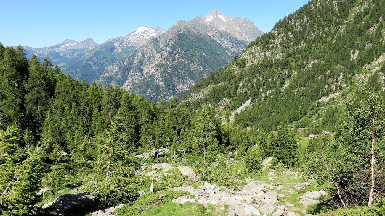 Al Colle Lazouney, vista verso i monti di Alagna ValsesiaIl lento ritorno a valle - Si conclude una giornata meravigliosa