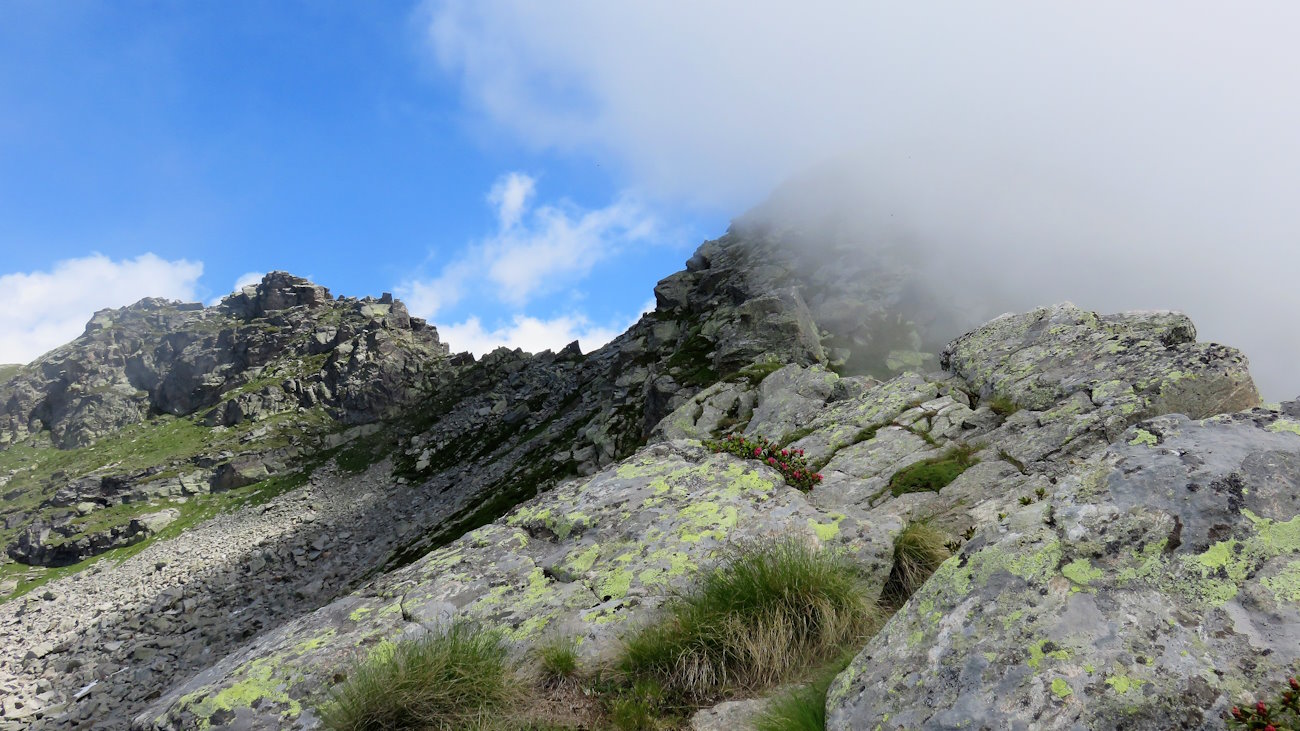 Immerso in questo amletico dubbio (andare o non andare?) mi raggiunge anche la coppia di escursionisti che avevo salutato al Lago Grekij. Loro scenderanno subito al Rifugio Rivetti, mi dicono, mentre io sono ancora indeciso.