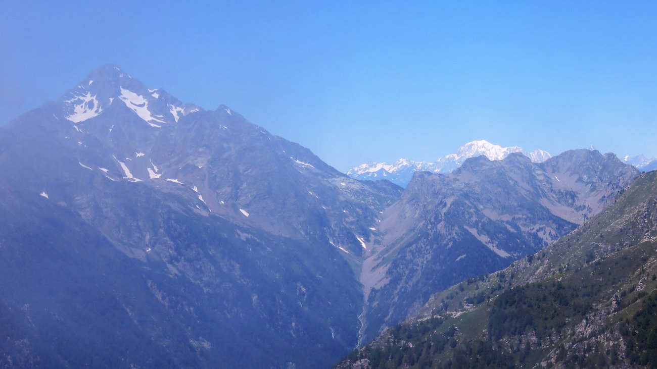 Ovviamente l’unico panorama che posso vedere è quello sul lato valdostano con le montagne di Gressoney in prima fila e il Monte Bianco sullo sfondo.