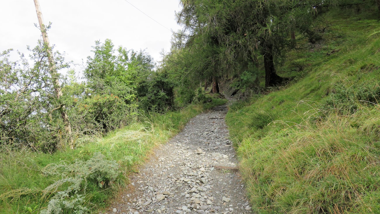 Il sentiero se possibile si immerge ancora di più nel bel bosco, ora di larici e abeti, iniziando a farmi assaporare i profumi della montagna e l’isolamento. Non sale o scende nessuno oggi: forse la giornata plumbea non ispira alle passeggiate (beh, la mia non è che posso chiamarla proprio “passeggiata” alla fine...).
