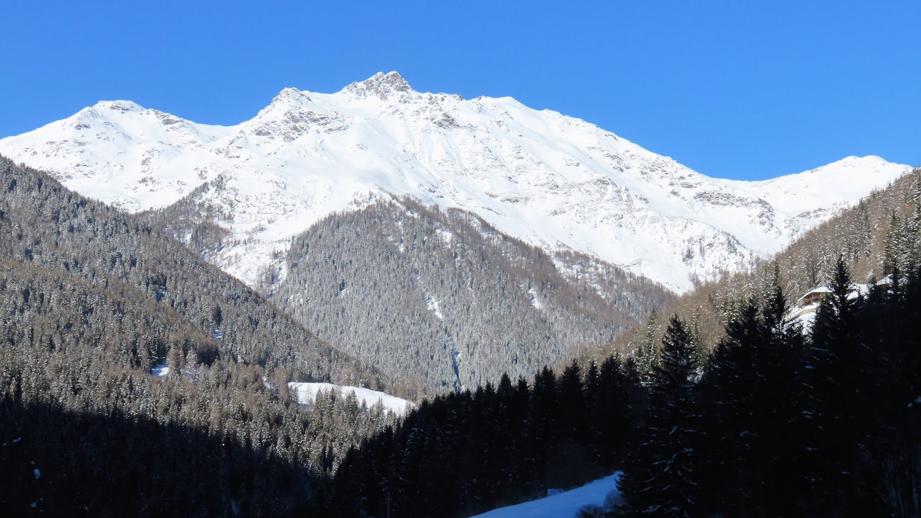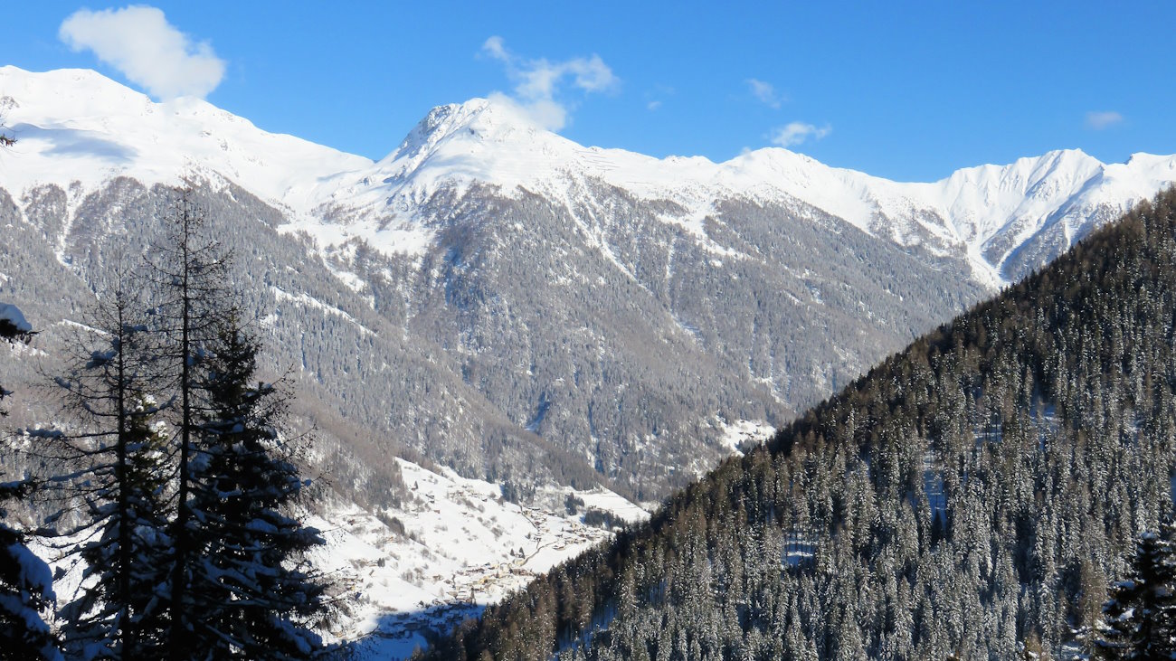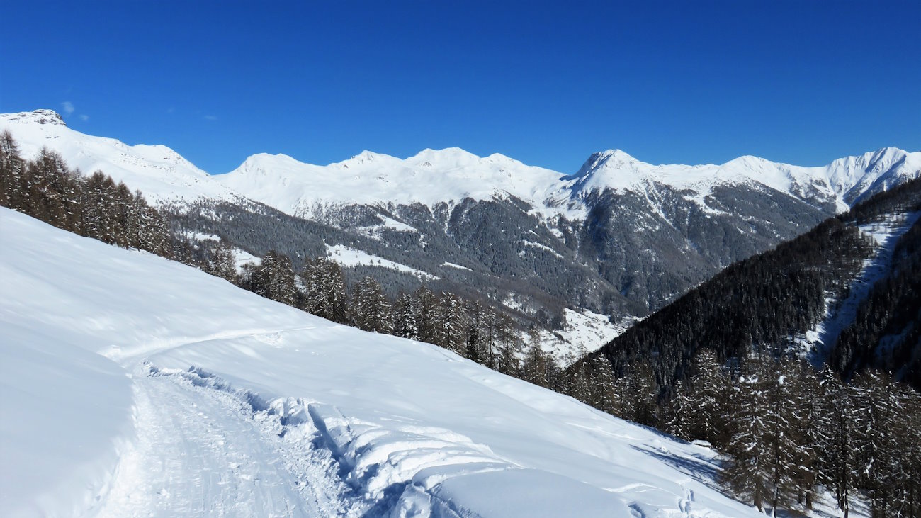 Oltre a questa lo sguardo inizia a spaziare sui monti circostanti, ora completamente carichi di neve.