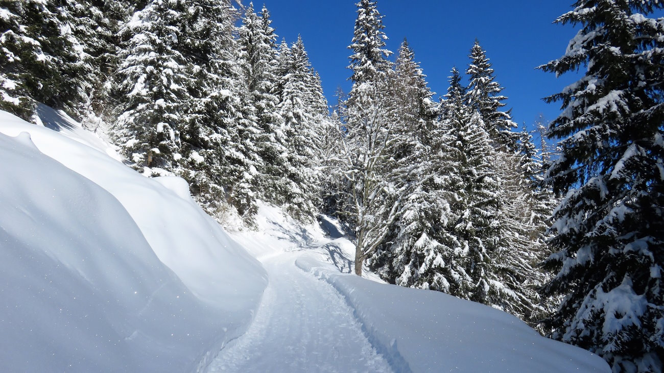 Una gelida e facile ciaspolata mattutina, con proiettili vaganti