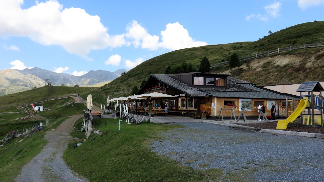 Il Rifugio è davvero grande e con un’ampia terrazza panoramica dove sono collocati i tavoli per mangiare. Lo stile è carino, anche se non appartiene alla tipica baita di montagna. Tutto quello che gli sta intorno, invece, è un autentico luna-park in quota per famiglie; in una grande area attrezzata, al cospetto dell’imponente scritta “Berg 360°”, trovano posto varie “attrazioni”, alcune buone, altre molto meno.