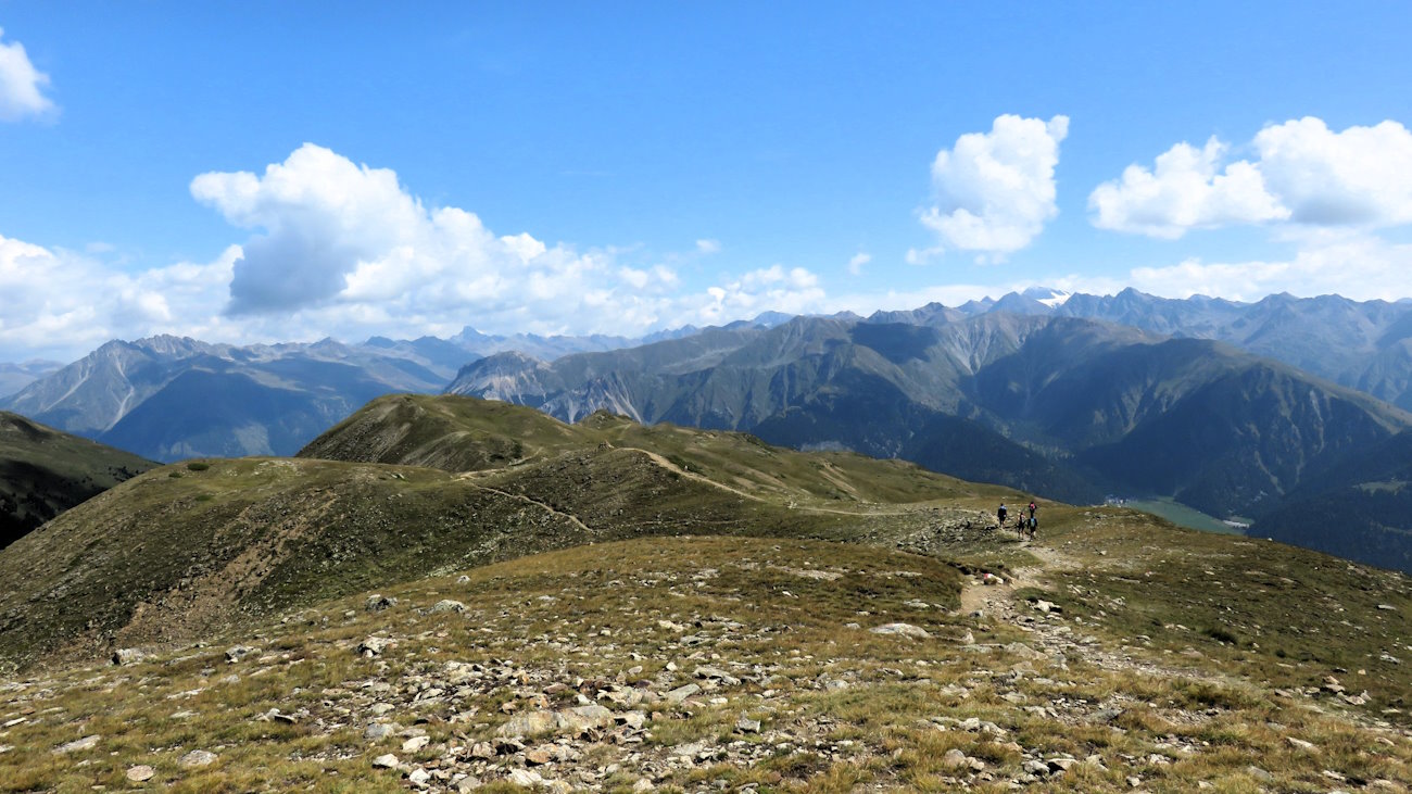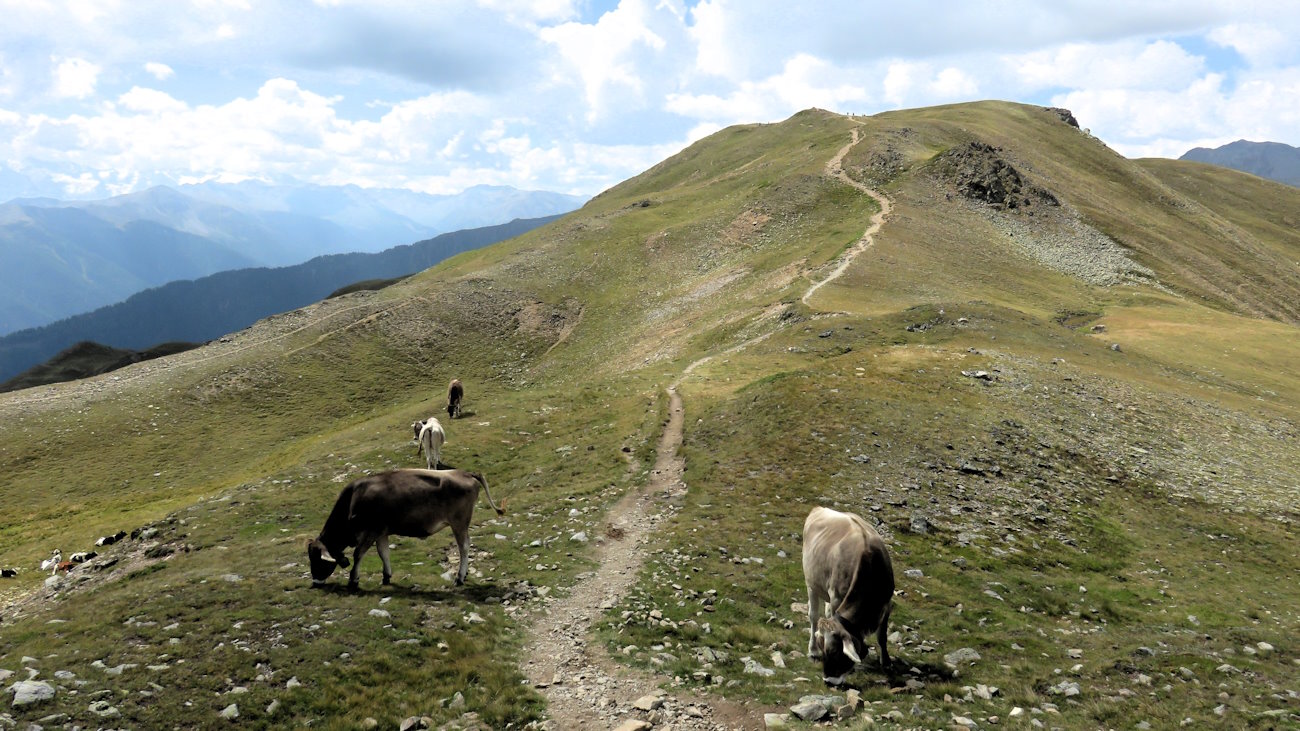 Il sentiero giunge quasi alla fine di questa lunga e favolosa cresta, fino ad un bivio. A sinistra si scende per la Zerzertal, a destra si ritorna a Pramajur ma ora... non è ancora giunto il momento della discesa!