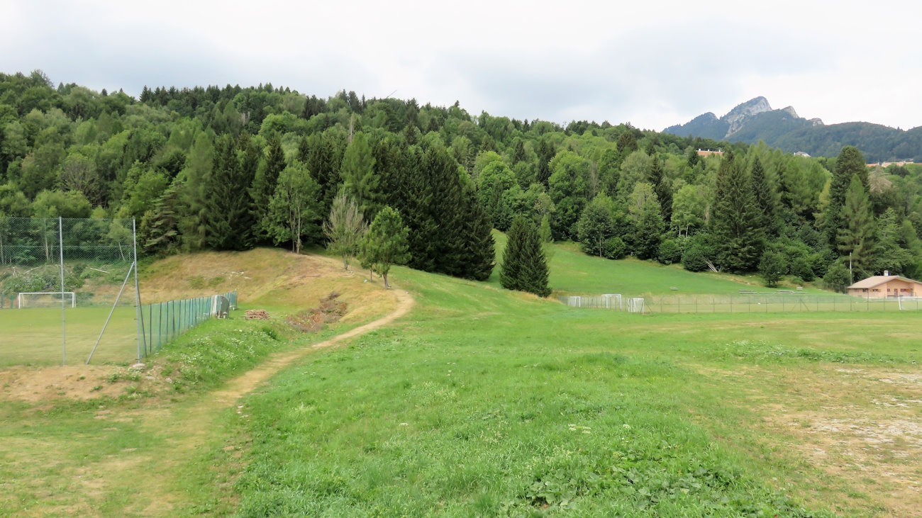 La partenza a Tonezza, fiancheggiando i campi sportivi